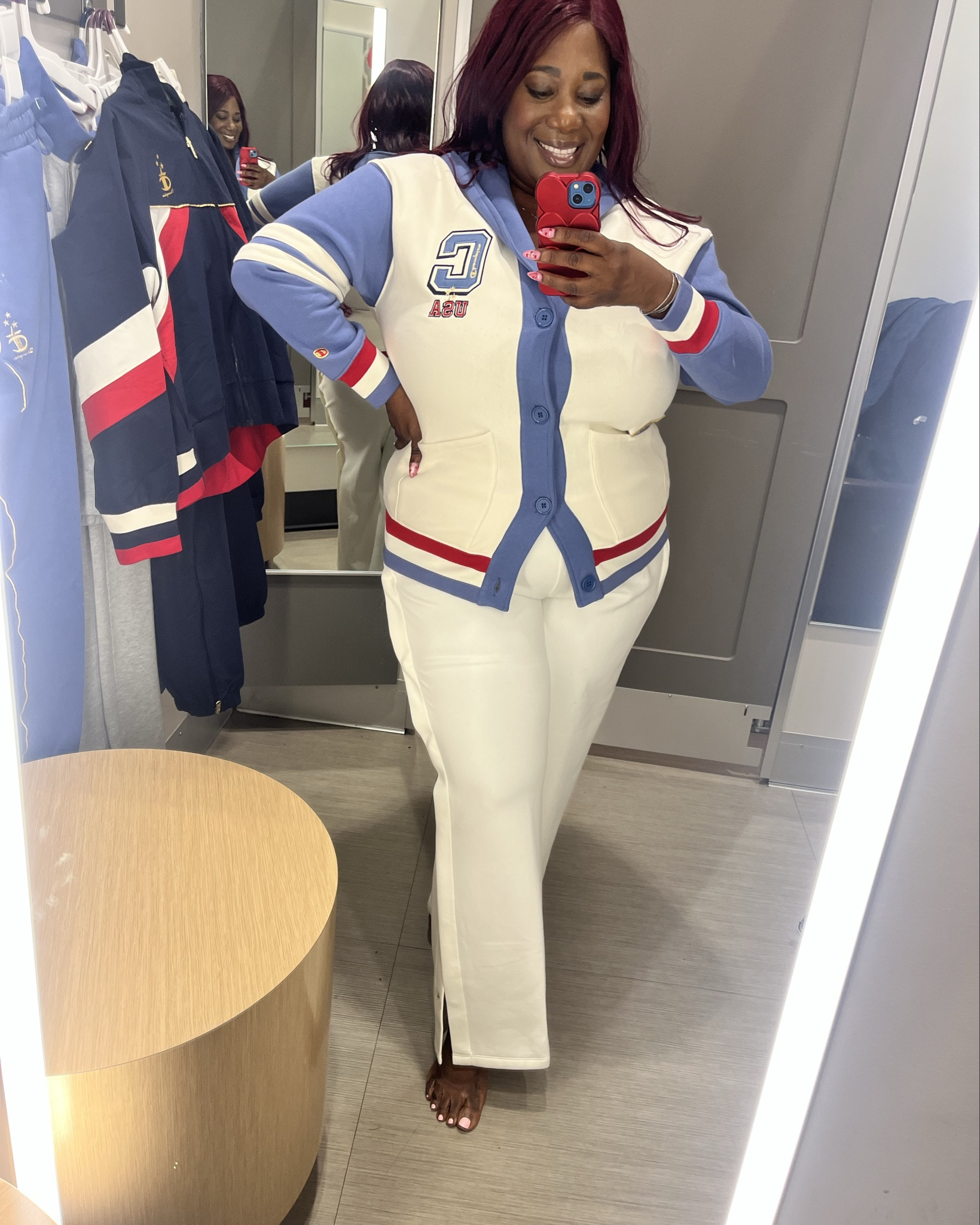 I am wearing the size XXL in the dress and Blazer