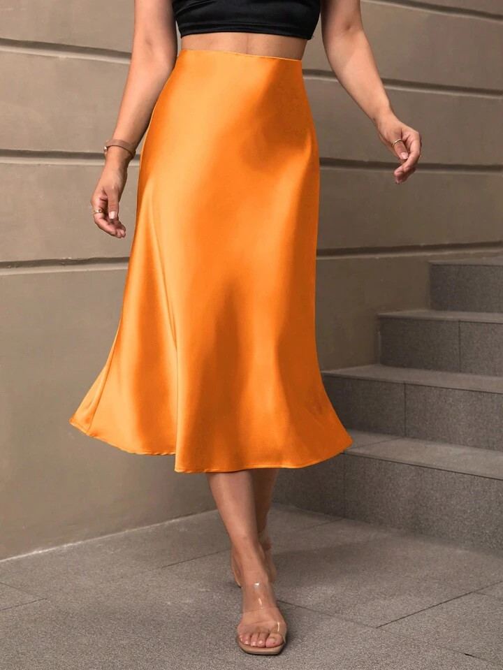 Sollinarry Solid Mermaid Hem Satin Skirt