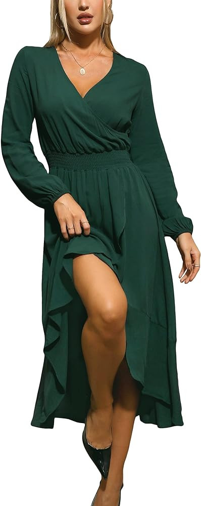 BLENCOT Womens Casual Floral Deep V Neck Long Sleeve Long Evening Dress Cocktail Party Maxi Weddi...